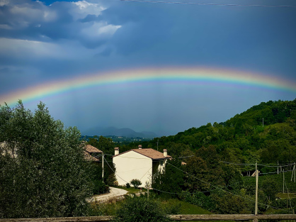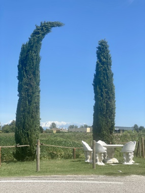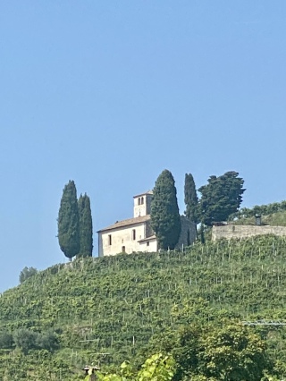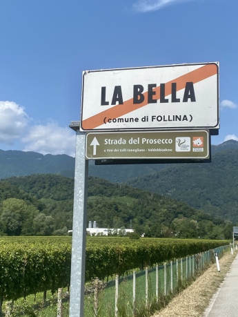 Ich bin morgens die letzten Kilometer zu Tal gesaust und danach immer parallel zu den letzten Ausläufern der Berge durch das anmutige hügelige Gebiet des Valdobbiadene geradelt. Hier wächst der Prosecco und ich empfinde es jedesmal angenehm, durch Weinanbaugebiete zu fahren. Egal wo auf der Welt ist ihnen immer gemeinsam, das es durch liebliche Landschaften geht, oft mit gepflegten kleinen Orten, die nett geschmückt sind, propere und adrette Vorgärten und geschmackvolle Häuser, die den Weg säumen. Genau so sieht es hier auch aus.