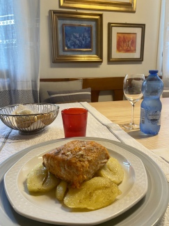 Gestern angekommen und hungrig nach der Fahrerei habe ich alles, wenn auch mit Mühe, bewältigt, was mir hier an Leckereien zum 4-gängigen Abendessen aufgetischt wurde.
