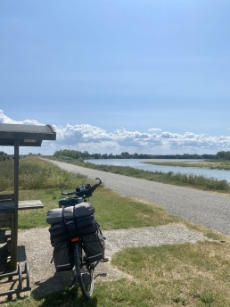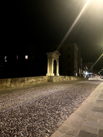 Nachdem Mama mir noch frisches kaltes Mineralwasser in meine Fahradflasche gefüllt hat konnte ich mich heute morgen nach dem wie immer opulenten Frühstück auf den Weg nach Padua machen, wo ich mittlerweile eingetroffen bin. Ich habe hier ein nettes kleines Hotel in unmittelbarer Nähe eine der ältesten Universitäten Europas. Die Fahrt war unanstrengend und nett , zuerst durch die Weinhänge des Prosecco- Gebiets und später durch dichten Wald und zum Ende kilometerlang auf dem Deich eines kleinen Flüsschens.