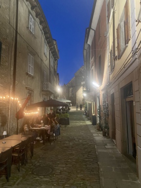 Der frühere Stop stellte sich nach kurzer Zeit als immenser Glücksfall heraus, da ich in einem wirklich sehenswerten Bergdorf untergekommen bin weitab von jedem Tourismus. Es war ein einzigartiges Erlebnis, als einziger Fremder durch das Dorf zu laufen und am Abend in der kleinen Dorfgasse wirklich lecker zu essen. Das Gespräch mit Einheimischen blieb in Italien natürlich nicht aus und meine Tour erntete großes Hallo und einen Rotwein auf Kosten des Hauses (oder eines privaten Spenders?).