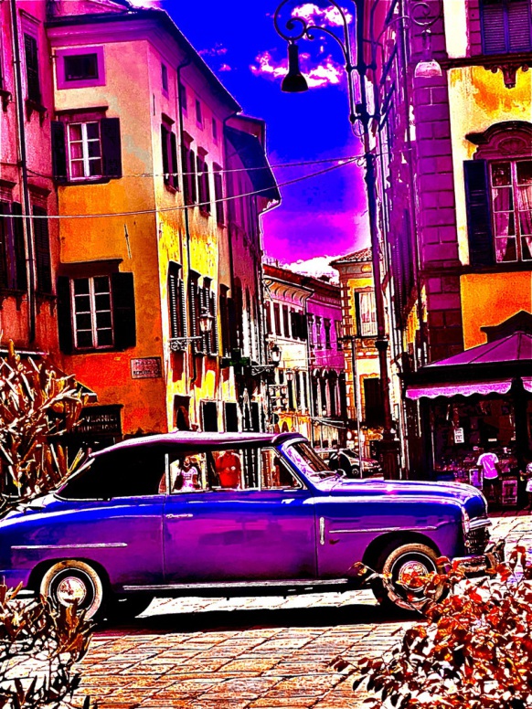 ein alter Fiat - unterwegs auf einem kleinen Marktplatz geschossen und nachbearbeitet
