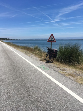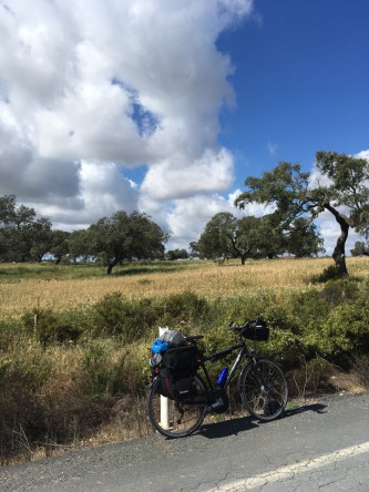Heute habe ich 60 km geradelt und bin jetzt in Portugal. Ich bin um 8.30 Uhr los wie jeden Morgen und habe glücklicherweise gleich