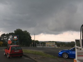 Unentschieden - ich bin nicht komplett nass geworden, habe mich allerdings bergauf zur einsamen Tankstelle, die wie eine