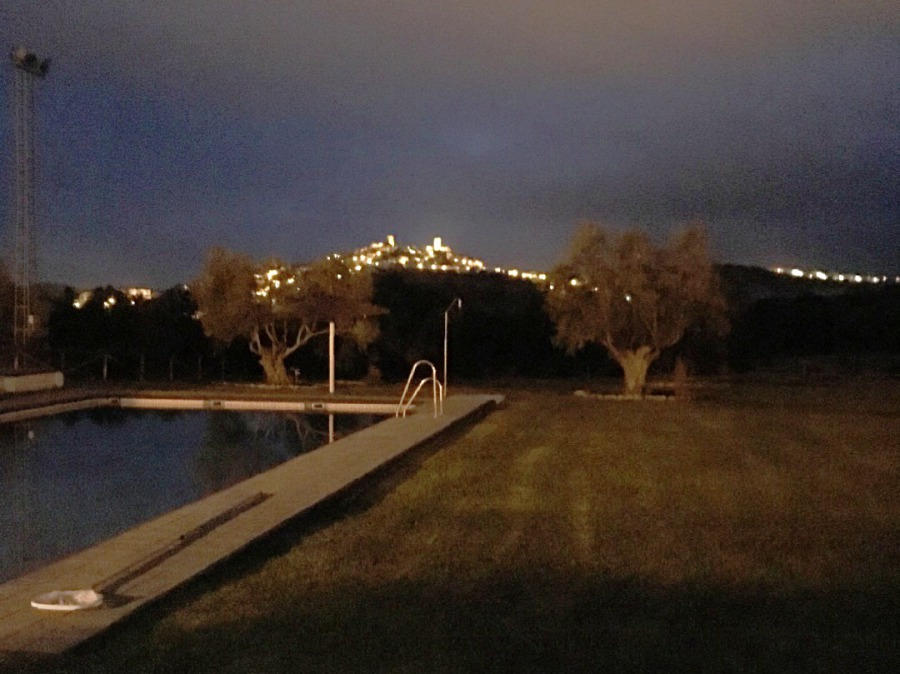 Ich war in einer größeren Stadt, da gab es ein Hotel am Marktplatz, und das war leider ausgebucht! Da musste ich mich notgedrungen nochmal auf den Drahtesel schmeißen und weitere 12 km fahren. Da ich echt fertig war -30 Grad- und die Landstraße deutlich länger war, bin ich über die Autobahn gefahren, zwar nur 8 km, aber angehupt bin ich oft worden. Zum Glück kamen keine Bullen, mit der Guardia Civil ist nicht gut Kirschen essen. War halt Notwehr, man kann ja auch mal ein Hotel hinstellen ( geht doch bei Monopoly auch).