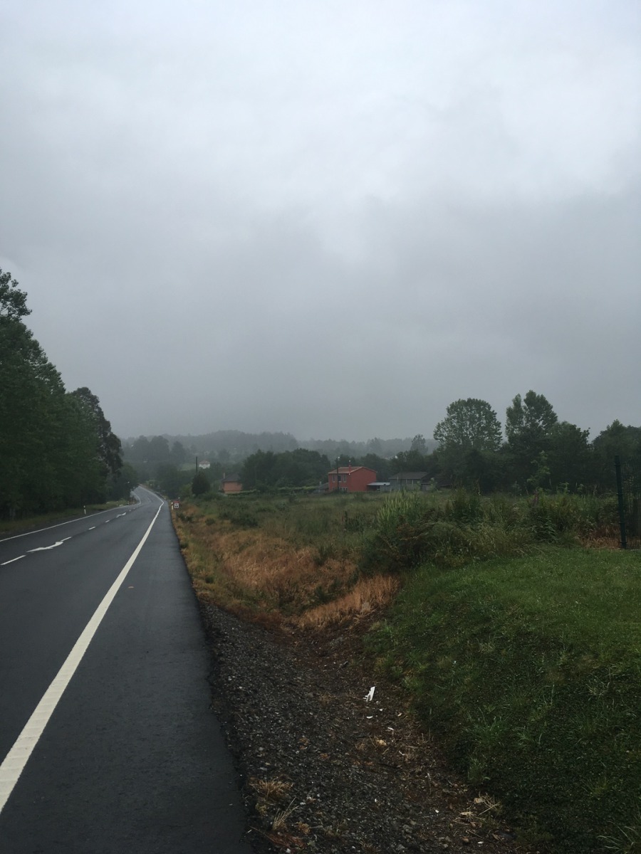 Gestartet bin ich bei herrlichem Sommerwetter, was dann leider so gegen Mittag umschlug und mich 8 (!) Kilometer vor dem Ziel in Santiago de Compostela zu einem mehrstündigen Aufenthalt unter dem Baldachin eines kleinen Cafés genötigt hat.