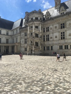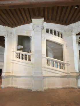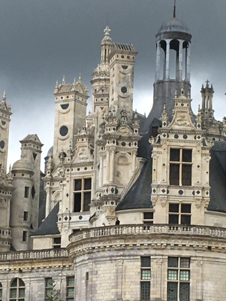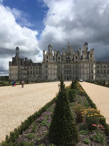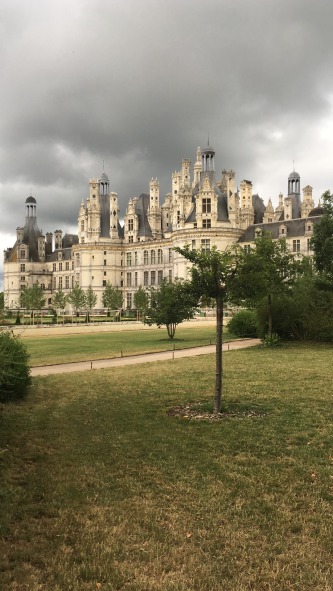 30. 06. Heute war an Radfahren nicht zu denken. Es waren im ca. viertelstündlichen Wechsel Wolken, Sonne und Starkregen vertreten, die sich den ganzen Tag über kontinuierlich abgewechselt haben. Also habe ich es sehr ruhig angehen lassen, ohne den Wecker zu stellen ausgeschlafen, dann ausgiebig gefrühstückt, um dann bis 12 Uhr noch etwas zu lesen. Um ein Uhr fuhr der einzige Bus des Tages nach Schloss Chambord. Dieses Schloss gilt als das schönste der ganzen Loire-Schlösser und ich bin nicht abgeneigt, dem Glauben zu schenken. Da steht ein steingewordener Traum mitten in der Landschaft ! Ich hoffe, die Bilder können das ansatzweise vermitteln. Es ist ja nun das vierte Schloss in vier Tagen von den ca. dreißig Loire-Schlössern, das ich mir angesehen habe, aber Chambord hat mir doch am mächtigsten imponiert, und das, ohne im mindesten die Schönheit der anderen besuchten Schlösser in Abrede stellen zu wollen. Das zentrale Treppenhaus zum Beispiel besteht aus einer ineinander verwobenen Doppeltreppe, auf der man läuft und die Personen auf der anderen Treppe immer wieder sehen kann, ohne ihnen je zu begegnen (wie eine Doppel-Helix). Faszinierend! Diese Treppe wird als Entwurf Leonardo da Vinci zugeschrieben, der seine letzten Lebensjahre im Amboise verbracht hat und in diesem Schloss auch begraben liegt ( siehe Eintrag v. 27. 06.). Nachdem ich im naheliegender Restaurant nach dreieinhalb Stunden Besichtigungstour bei einem Glas Rotwein ein heftiges Gewitter überstanden hatte, habe ich mich danach mit dem Bus wieder auf den Rückweg nach Blois gemacht, wo ich sehr gut zu Abend gegessen habe und mir danach auf dem Marktplatz noch zwei Pastis gegönnt habe. Morgen klingelt um 6.30 Uhr der Wecker, da ich laut Regenradar die 70 km bis Orleans tunlichst bis 14 Uhr geschafft haben sollte. Gute Nacht, Freunde.