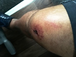 Kurz vor dem Ziel hat es mich folgerichtig auch gerissen, ein Bordstein war komplett unter Wasser und somit nicht für mich zu sehen und da lag ich auch schon mit dem Fahrrad in Dreck und Wasser. Ich habe nur ein paar Hautabschürfungen und eine Schulterprellung, aber das Rad : vordere Bremse abgerissen, Schaltung völlig verbogen, Lampe vorne ebenfalls abgerissen, Schutzblech aus der Verankerung gebrochen und verbogen.