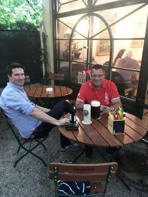 Bei Bernds Ankunft im Hotel haben wir uns beide sichtlich gefreut, uns nach über drei Monaten persönlich gegenüberzustehen und nicht nur per WhatsApp Kontakt zu haben. Wir haben uns dann zügig in einen Münchner Traditionsbiergarten begeben, den