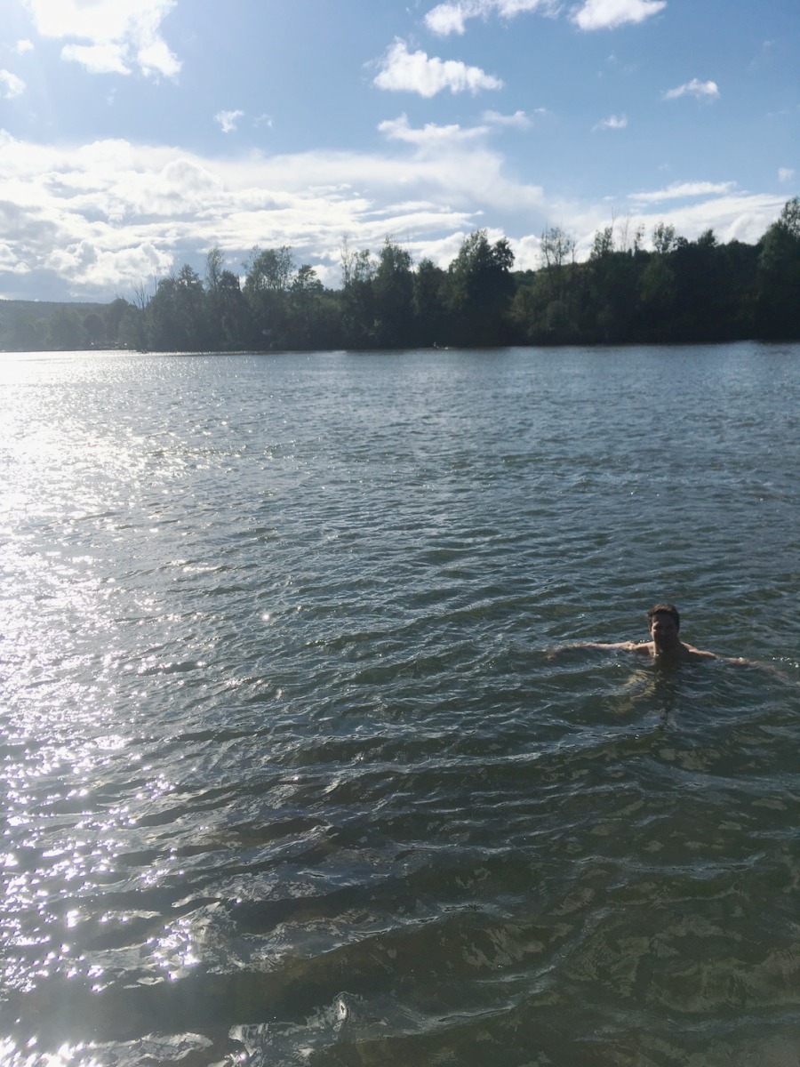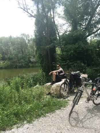 Wir sind auf wunderschönen Radwegen in den Flusstälern der Isar, der Amper und der Donau fast immer am Wasser entlanggefahren, haben am Mittag im Kloster Weltenburg, der ältesten Klosterbrauerei der Welt, zu Mittag gegessen, danach am Ufer der Donau ein kleines Schläfchen gehalten und sind danach mit dem Boot durch den Donaudurchbruch bei Kehlheim gefahren- ein imposantes Naturerlebnis. Leider hat es genau während der Schifffahrt etwas zu regnen begonnen. In Kehlheim am Anleger war alles trocken und so sind wir weiter an der Donau entlang bis Regensburg gekommen, nicht ohne am späten Nachmittag noch ein erfrischendes Bad im Fluss zu nehmen.