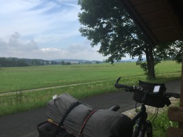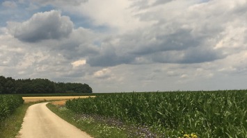 Nach einer längeren Pause in einem überdachten Unterstand am Wegesrand hörte dann der Regen auf und ich konnte meine Tour fortsetzen, die danach wieder Spaß machte, da ich immer auf Radwegen in den Mais-oder Getreidefeldern fuhr.