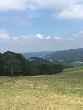 Heute stand die letzte Bergetappe an, es ging quer über den Thüringer Rennsteig ins Saaletal. Heute habe ich bei der Abfahrt einen neuen Rekord aufgestellt, das schnellste gemessene Tempo der Tour mit 69,4 km/h!