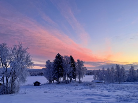Wir sind um 05.30 Uhr aufgestanden und waren ungefrühstückt um 06.00 Uhr auf der Straße. Wir hatten heute 1000 km vor dem Kühler und das einzig Erwähnenswerte waren die Polarlichter und der bombastische Sonnenaufgang.