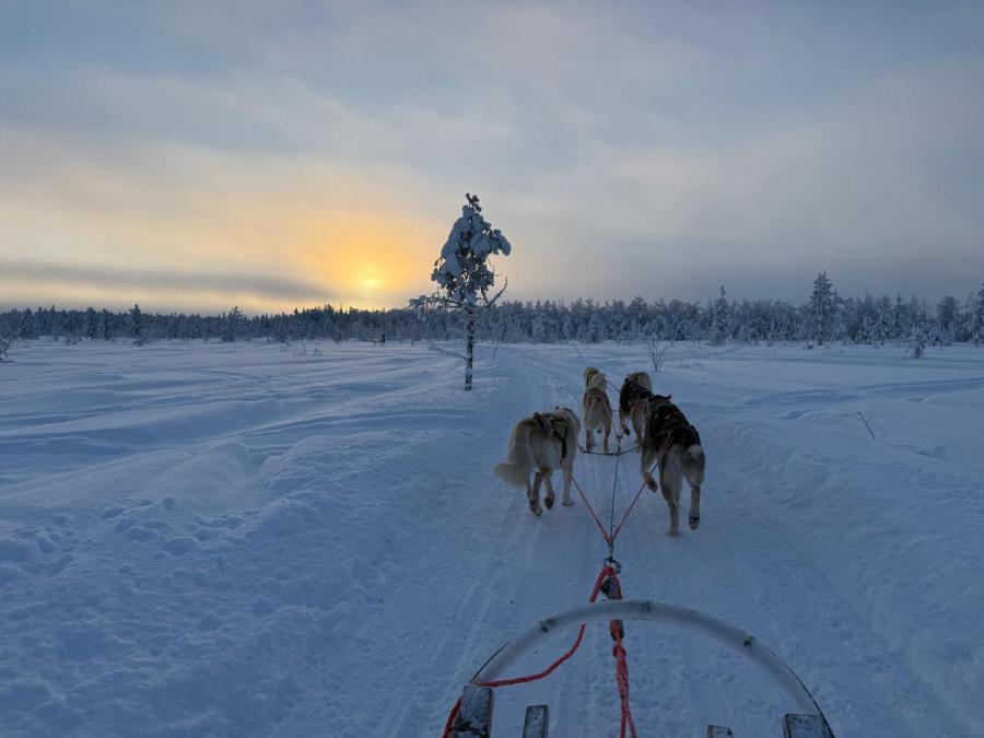 Die zwei Stunden in der Weite des Nordens auf dem Schlitten habe ich dann wieder sehr genossen. Nur das Hecheln der Hunde und das Knirschen der Kufen auf dem Schnee zu hören ist schon ein einmaliges Erlebnis.