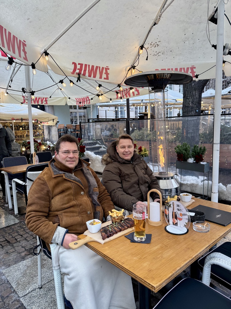 Auf einer gut beheizten Terrasse eines Lokals am sehenswerten Marktplatz haben wir beide dann rund zwei Stunden gesessen und bei Glühwein und später einem guten Mittagsmahl die stattliche Anzahl an Touristen an uns vorbeiziehen lassen.