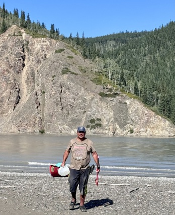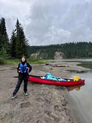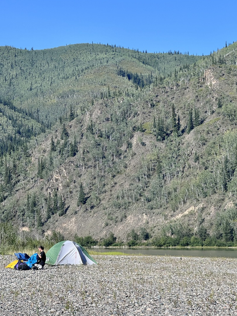 Am Nachmittag legten wir auf einer Samdbank an, breiteten unsere Isomatten auf einem kleinen sandigen Fleckchen aus, gingen ausgiebig baden und ließen uns anschließend in der Sonne trocknen und fühlten uns mehr wie auf Sizilien als in Alaska. Die Temperatur heute betrug bestimmt 30 Grad.
