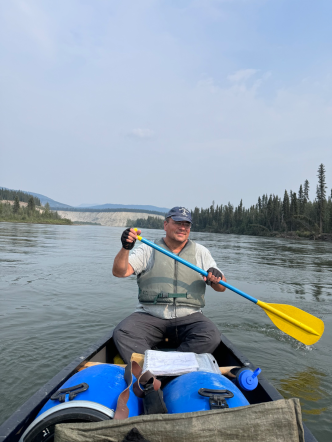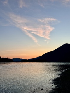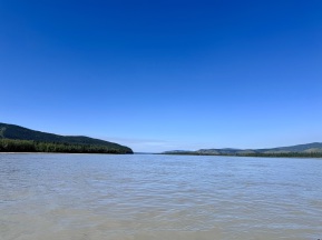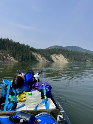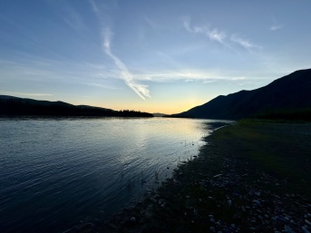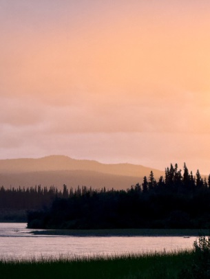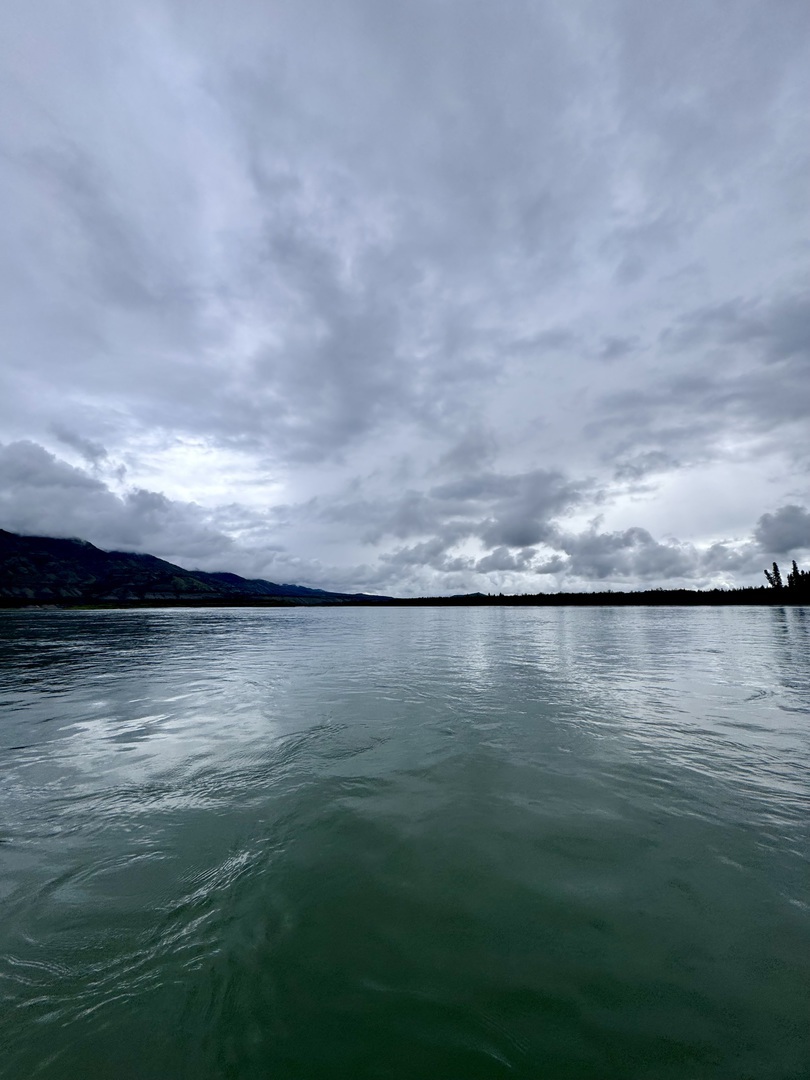 Die letzten 30 Kilometer auf dem Teslin River absolvierten wir mit gemütlichem Wanderpaddelschlag bei guter Strömung, Windstille und schönem Sonnenschein. Am Nachmittag erreichten wir dann den Yukon, der uns hoffentlich problemlos bis Dawson begleiten wird.