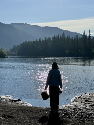Ich wachte um 7 Uhr auf, nahm mir meine warme Fleccejacke und setzte mich mit meinem Klappstuhl an den Fluss, um Abschied zu nehmen, bevor die