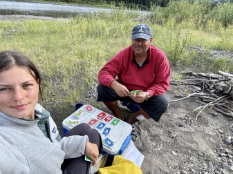 Nach einem kurzen Aufenthalt und großer Umpackerei von unseren Reisekoffern in wasserdichte Säcke im Camp wurden wir dann das letzte Stück zur Einsetzstelle gebracht, eine Kreuzung des Alaska Highway mit dem Teslin River, an der ein einzelnes Gasthaus steht (Johnson's Crossing) und an dem wir erstmal eine der legendären Zimmtschnecken aßen.