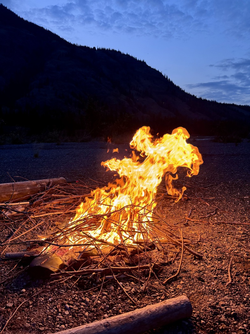 Wir saßen dann noch bis gegen Mitternacht am prasselnden Lagerfeuer und genossen die Stille und Weite dieser ursprünglichen Wildnis.